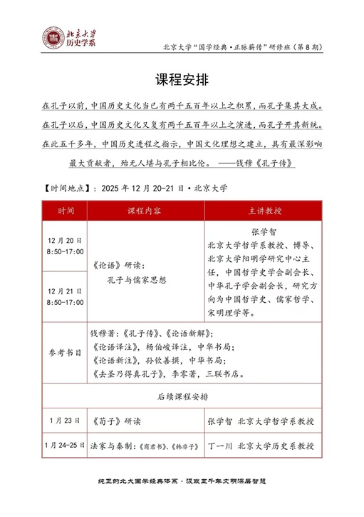 北京大学“国学经典·正脉薪传”研修班(第8期)12月开课通知 |